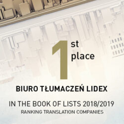 Zakończyliśmy 2020 rok znakomitą wiadomością: Lidex znów zajął pierwsze miejsce w rankingu Warsaw Business Journal. Tym samym po raz kolejny potwierdziliśmy pozycję lidera w branży tłumaczeniowej w Polsce! Dziękujemy naszym nieocenionym Tłumaczom i niestrudzonemu Zespołowi – to dzięki ich zaangażowaniu nie ma dla Lidexu rzeczy niemożliwych!